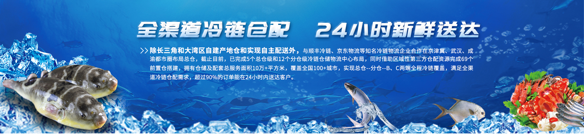 生鮮商品具有品類多、短保、易損腐的特性,決定了它對倉儲、運輸中的時效、溫度、溶解氧、濕度等條件都有較高要求。中洋魚天下建立全國冷鏈倉配網絡和體系,由自建倉配和第三方倉配構成,依托倉配一體的冷鏈倉網布局,以產品為基礎,以科技為核心,通過構建社會化冷鏈協同網絡,打造全流程、全場景的一站式冷鏈服務,實現對商家與消費終端的安心交付。