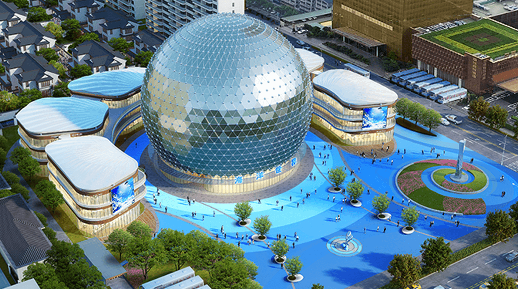 海洋廣場,規劃占地面積18000平方米,建筑面積15000平方米,標志性建筑為仿鼓氣河豚魚球型建筑,高42米,直徑50米,5層建筑,銀色球體,與金磚酒店南北比肩,方圓相應、金銀相間,天圓地方。傾力打造集親子、水族、科普、影院、休閑、餐飲、商業七大功能、多元業態的城市文商旅綜合體,以炙熱的家國情懷,彰顯海安河豚之鄉特色,彌補城市海洋文化缺失。